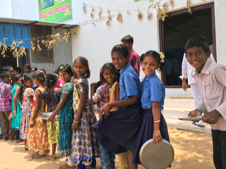 ピース・インド プロジェクトでは、プロジェクトで運営するブリッジスクール(補習学校)で給食提供を行っています。