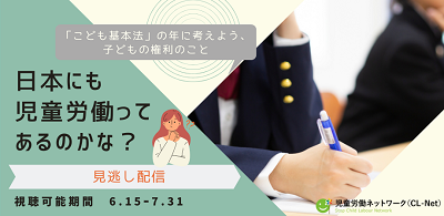 試聴お申込みはこちら:「7/31まで見逃し配信!「日本にも児童労働ってあるのかな?」 ー「こども基本法」の年に考えよう、子どもの権利のことー」