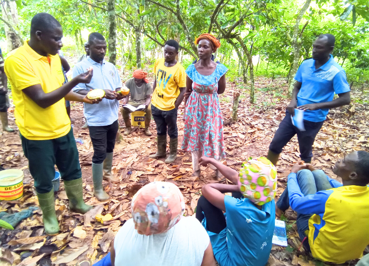 昨年度は、家庭の収入向上をサポートするために、子どものいるカカオ農家の人たちに、カカオをより効率よく栽培するための研修や、稲作の研修を実施しました。参加者たちからは、「収入を上げ、子どもたちの教育費を稼ぎたい!」といった声が聞かれました。