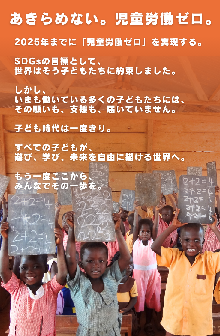 児童労働を生む社会の「仕組み」の問題です。私たちは、「児童労働ゼロ」を実現するまで決してあきらめません。