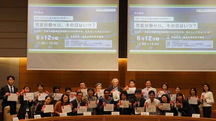 国際労働機関(ILO)が定めた児童労働反対世界デー当日であった6月12日には、国会議員、各省庁、JICA、企業、NGOなどが一堂に会し、児童労働の撤廃に向けて経験を共有し合い、課題解決を加速させるために必要なことについて議論しました。