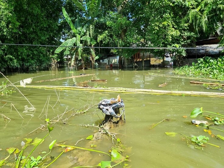洪水で被害を受けた茶畑(撮影:2024年7月13日 アッサム州)