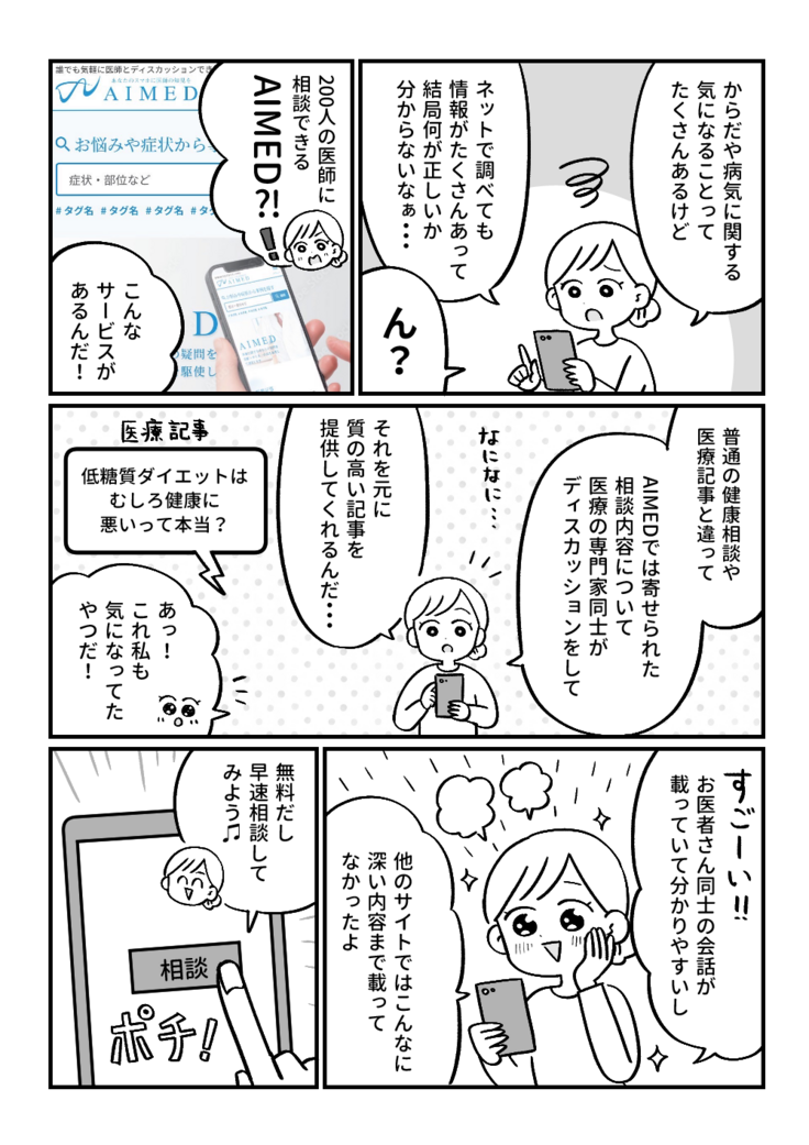 あなたのお悩みを専門家達が議論して答えてくれる、AIMEDでそんな特別な体験をしてみませんか。