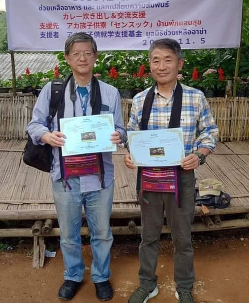 □センスック寮からの感謝状を頂いた「少数民族アカ族子供支援プロジェクト」共同代表の岡村康司と吉村元志(私) 3枚目