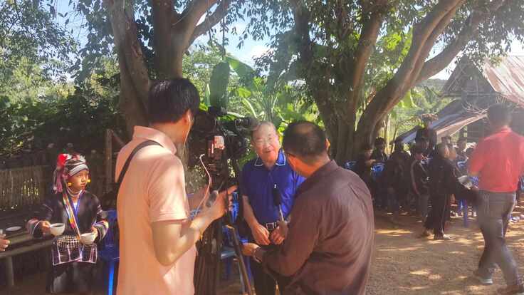 □下の写真は今年1月にチェンライ郊外のセンスック寮を訪問した際にNHKアジア総局の取材を受ける原田義之氏(RI3360地区チェンライロータリークラブパスト会長、国際ロータリークラブ会員、NPO法人タイ国学生日本語教育環境支援プロジェクト理事長、タイ国国立ダムロンラートソンクロ高校日本語教師)