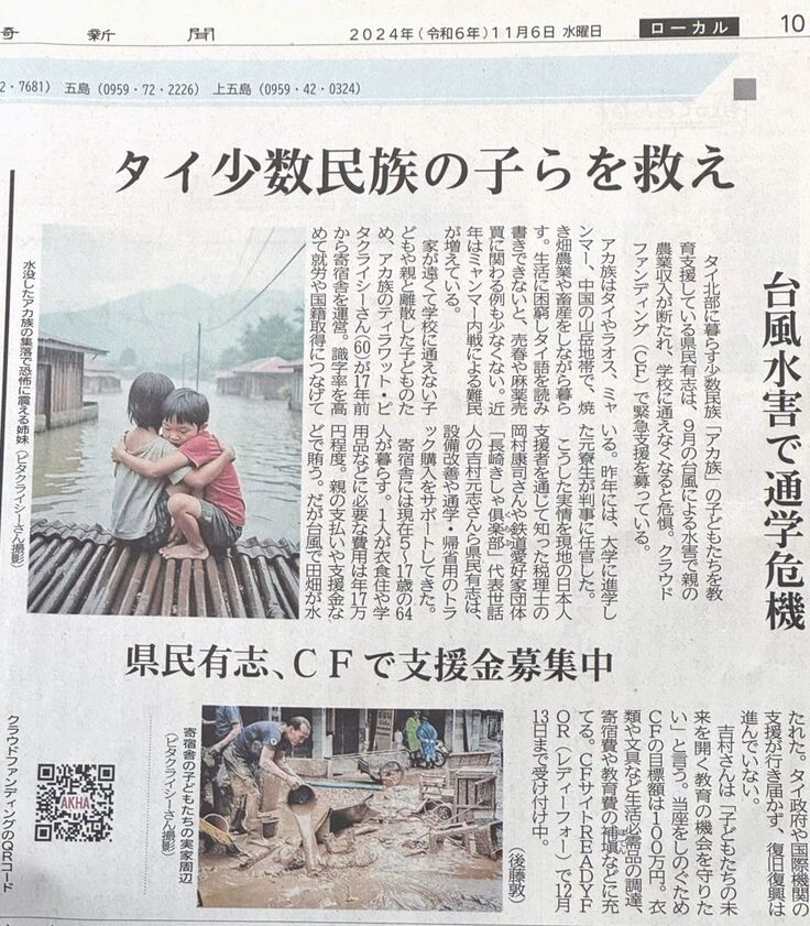 長崎新聞 10月6日の朝刊に、今回のクラウドファンディングの記事が掲載されました。