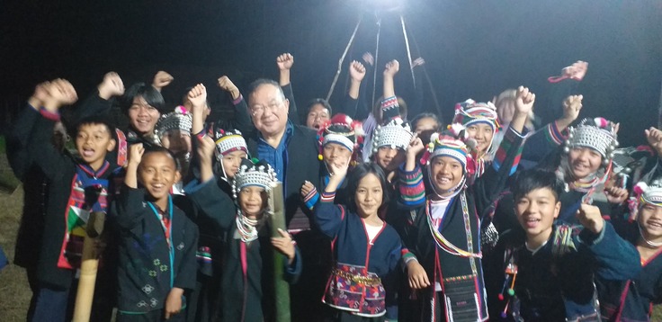 共同代表 吉村 元志 写真は原田先生とアカ族の子供達