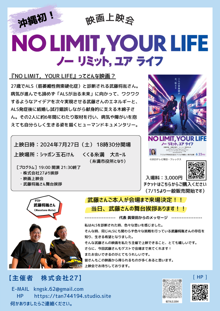 『NO LIMIT,YOUR LIFE』の映画上映会を行います。