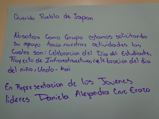 青少年リーダー代表 ダニエラ・アレハンドラ・クルス・エラソより』