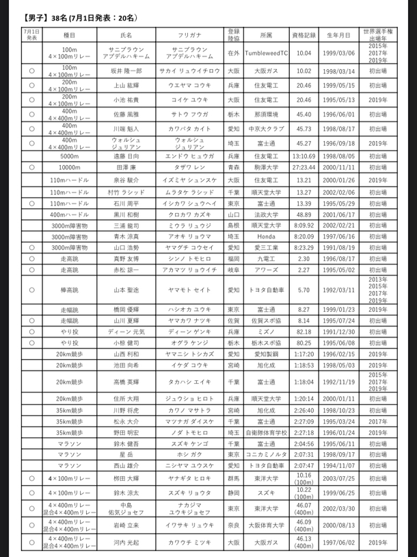 日本陸連より、オレゴン世界陸上の日本代表が発表されました。
