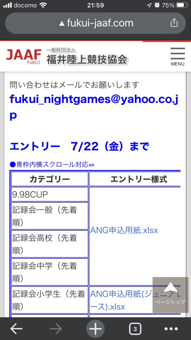 大会エントリー始まりました。