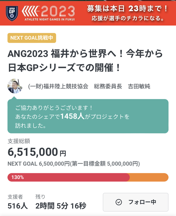ご支援いただいた皆様、おかげさまで nextゴールの650万をクリアいたしました㊗️🎊