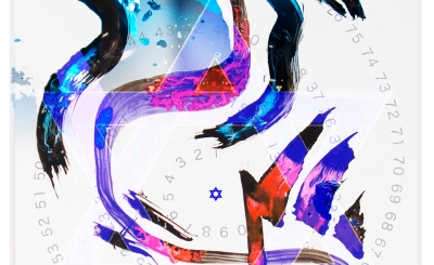 そこから解像度最大でデジタルスキャンし、Photoshopで繊細なカラーバランスを調整します。この時、パワーパネルとしての効果も入れたいので、波動が上昇する数式をIllustratorで作成しレイヤーに加えます。