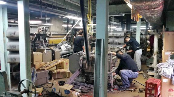 6月7日より移設のための準備の作業を始めました。自社工場内に移設のためのスペースを作るために、部品の入手などが難しくなり、ここ何年も動かしていなかった3台の織機を解体し部品取りをする作業から始まりました。