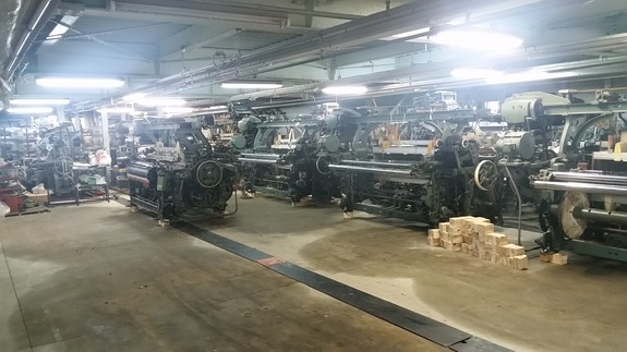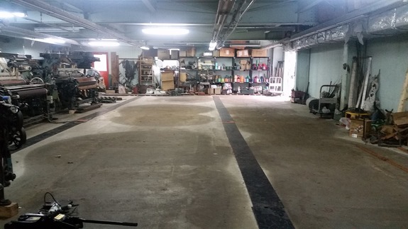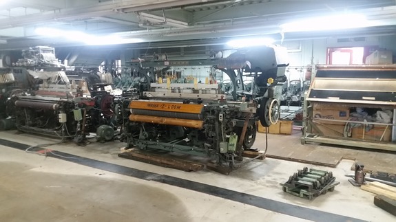 工場の南半分のスペースの東側で、シャトル織機が運び入れられた様子です。左手前2台はもと元々の織機でその奥に今回の2台、右側に4台です。