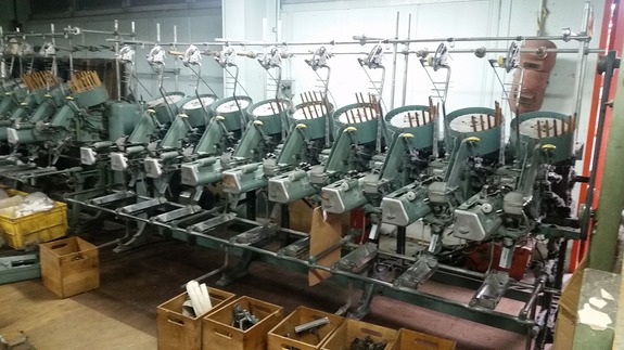今回、12錘を9錘に減らしてシュワイターというシャトルの管に糸を巻く機械も移設し、それがその機械です。
