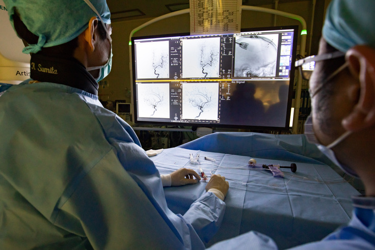 「血管内治療科」という病院の診療科はあまり聞き慣れないかと思いますが、脳卒中や脳出血、脳梗塞、くも膜下出血などの脳の血管の病気に対し、頭を直接開ける手術ではなく、細い管であるカテーテルを用いた手術を行い、より患者さんへのダメージが少ない治療方法を専門に行う診療科です。