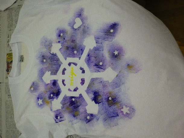 暑い夏にひんやりするような、雪の結晶をマスキングテープで形をつくり、絵の具を塗っていきました。