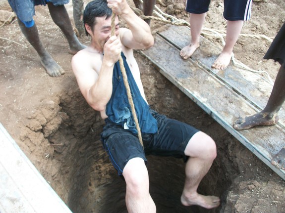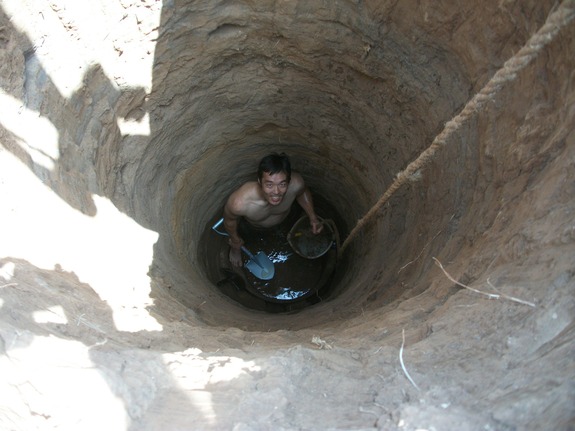 今回掘った井戸は、お蔭様で深さ約5メートルの所で水脈に当たり、真水である事を確認できました。安定した水利を確保する為、更に2.2m掘り下げる作業とカルバート(型枠)を入れる作業をお手伝いして帰国しました。