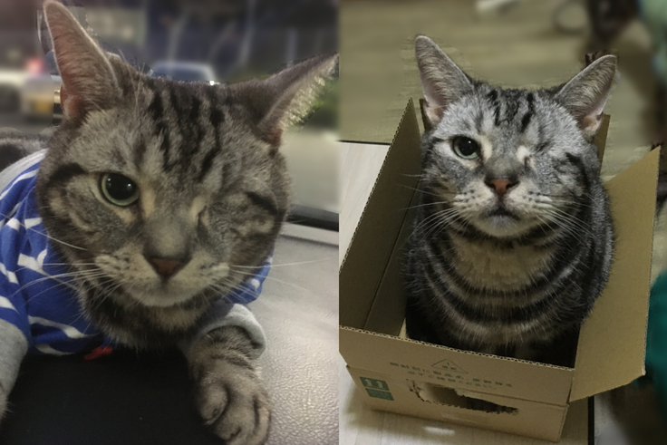 行く末が心配になり即譲って欲しいとお願いをし、我が家の一員になり、眼科専門の動物病院にて生後4ヶ月で眼球摘出しました。