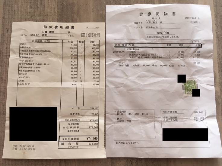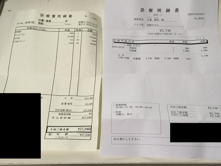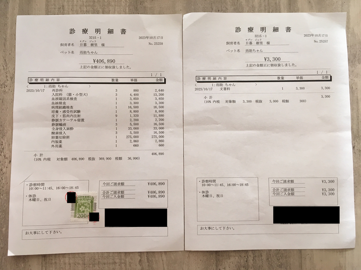 ▶︎ 4.掲載している資料についてページ上に掲載している診断書や診療明細書などの資料は全て動物病院から掲載の許諾を得ております。