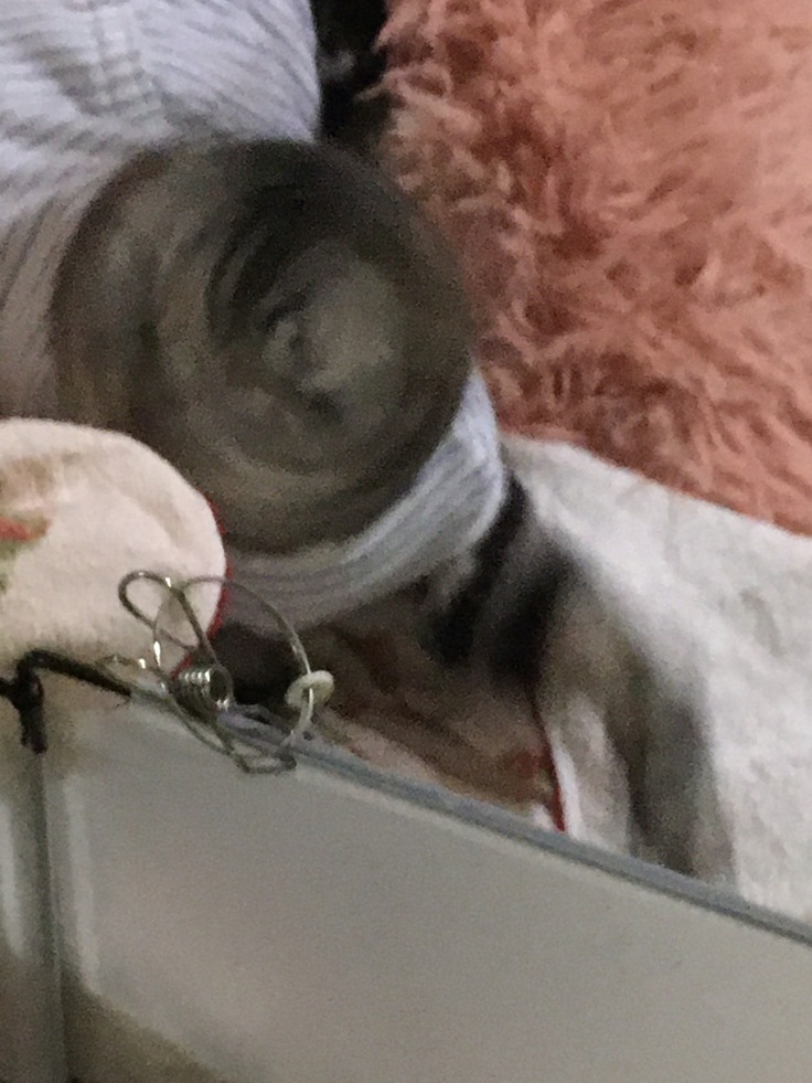 亡き祖父のお下がりタオルの上で荒ぶり、どこが顔なのか頭なのか…判別つかない。