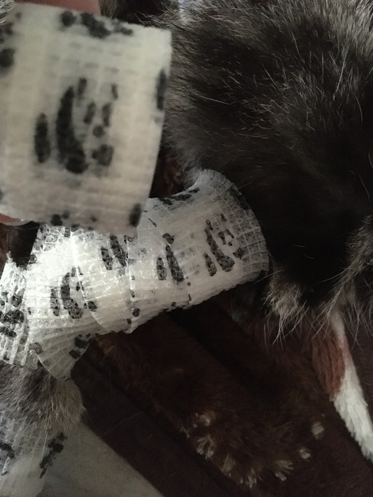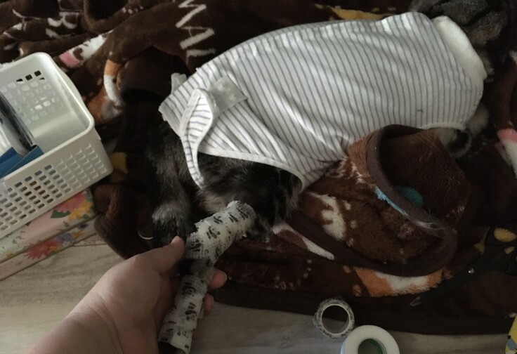 包帯等は手術前の時みたいに頻繁に散歩は出来なくなりましたが、お散歩へ行く時に使用してます。