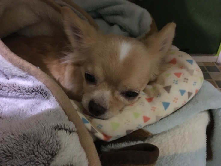 ししまるが体調優れない為寝ているのですが様子を見に動く程度で基本↓の姿勢で周囲を観察しています。雨助は本日も今のところ元気に過ごしています☺
