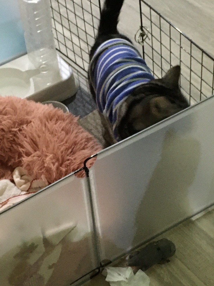 転がっているティッシュやアカハライモリぬいぐるみは遊んだ名残↑