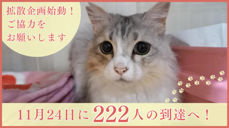 この企画は11月24日(金)までに222人(にゃんにゃんにゃん)を目指す企画です!Twitter(X)からご参加いただけます!