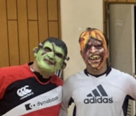 ↑大好評をいただいたハロウィンラグビーパーティーでゾンビに扮するコーチたち
