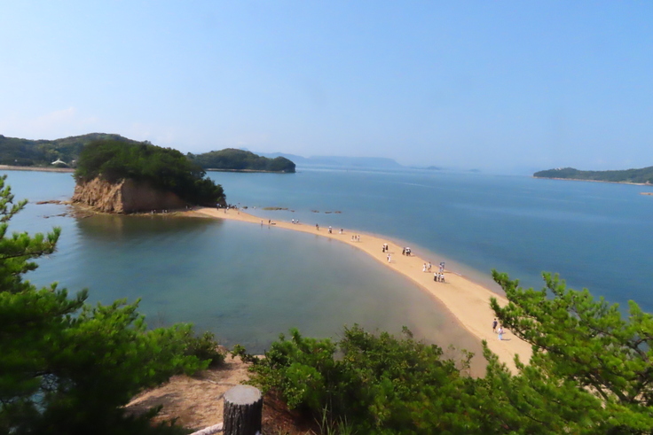 干潮の時しか現れない砂の道で、近くの離島まで渡ることができます。