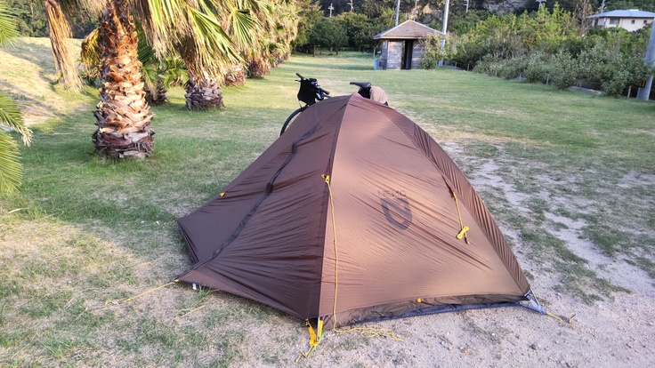 最終的に、OD缶を購入するために立ち寄った吉田温泉で力尽き、近くにある1泊600円の吉田キャンプ場に宿泊することに。温泉のロビーで休憩させてもらっている時点で、足の筋肉が急に張ったり、足をつりそうになったりし始めたので、今日はここまでかな~と思ったためです。