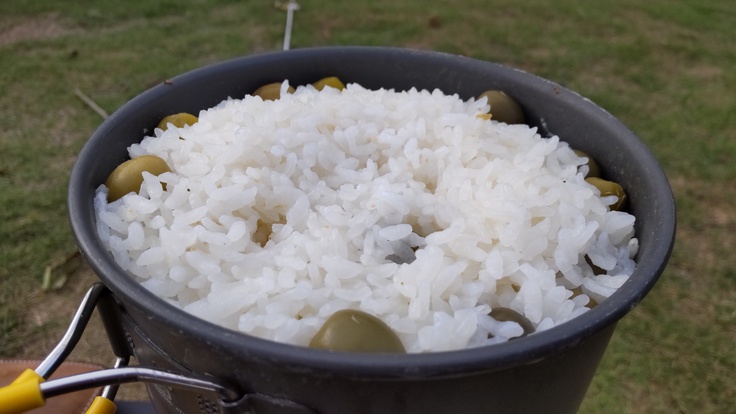 朝陽を見ながら朝食の準備です。朝ごはんは乾麺をゆでてラーメン。