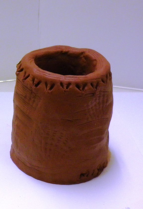 焼かずに固まる粘土を利用して、思い思いの「土器」を作りました!!