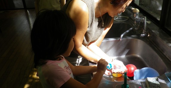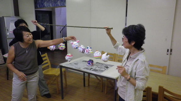 まずは、惑星のもとになる水風船を子ども達と一緒に膨らませました!