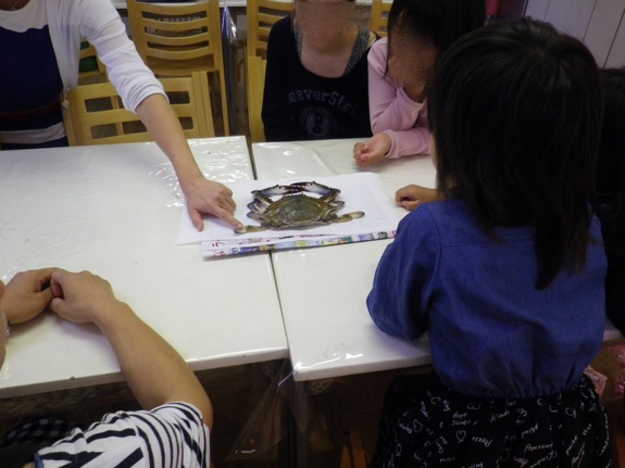 海の生き物をモチーフにすると、子ども達の反応は様々。喜んで触る子もいれば、気持ち悪い、臭い、など口にする子もいます…