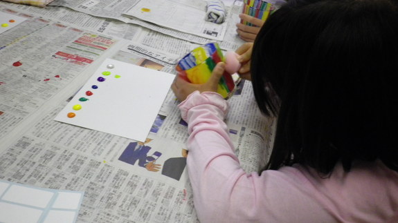 今回で、3回目のセッション。まだまだ、セッションのやり方を模索中ですが、とにかく、子ども達とって、色々な道具や材料が初めての体験なので、その貴重な瞬間に立ち会っていると思いながら進めています。