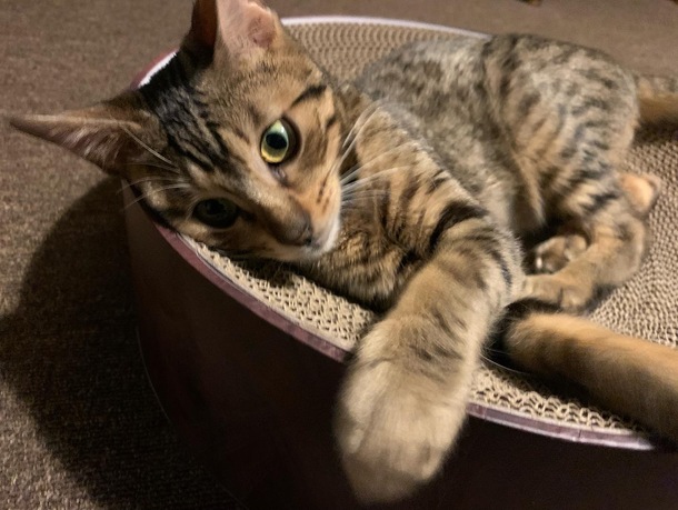 1月20日、プロジェクト開始記念日となりました!アッシュは最近新調した爪とぎベッドに夢中です、、、✨だいすきな猫じゃらしをもってベッドに入り、おなか丸出し仰向けで遊んでます🐱!体調回復は順調、くすりも上手に飲めるようになってきました!