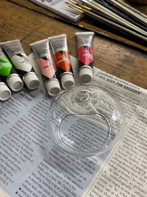 内側からアクリル絵の具で絵を描きましょう!