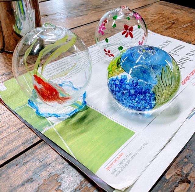 厚木グラススタジオで作った吹きガラスの風鈴に