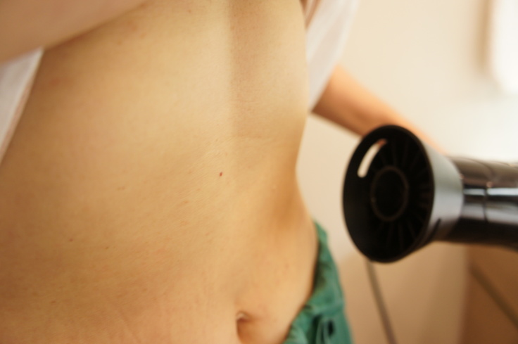 腹部の気になるところにも、進化型ドライヤーは使います。育成光線を当てることにより体が温まります。代謝が上がることにより、ウェストのくびれが出てくるかもしれません。