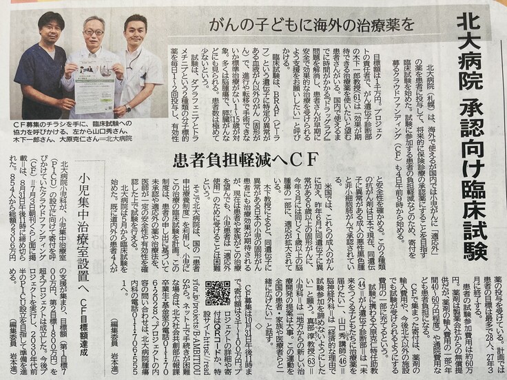 9/4 北海道新聞の朝刊に記事が掲載されました!