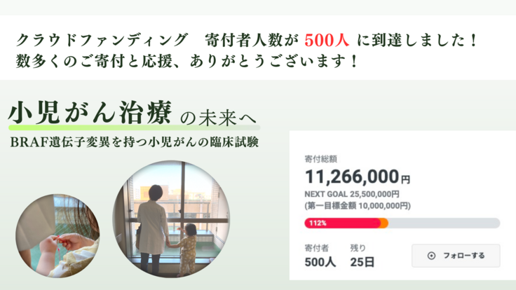 【小児がんクラウドファンディングへの支援者が500名を超えました!】
