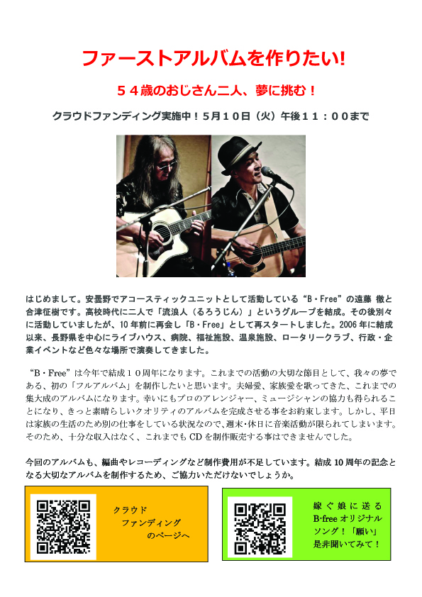 B・Free活動10年が凝縮された初のファーストアルバムを作りたい!