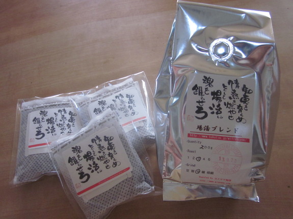 "銀の豆"の焙煎家・亀山逸人と知恵組フェスタ副代表の泉一也さんと共同で、『情熱をメラメラと注いだその後に、 最高のリラックスタイムを過してもらうためのコーヒー』を創作しました。その名も 《場活ブレンド》。おそらく皆さまが未体験であろう酸化前の「生コーヒー」を飲んでいただくことが出来ます。芳ばしさとほのかな甘みを含んだ香りに、透き通ったピュアな珈琲の味わいを是非、お楽しみください。場活オリジナルラベルも必見!