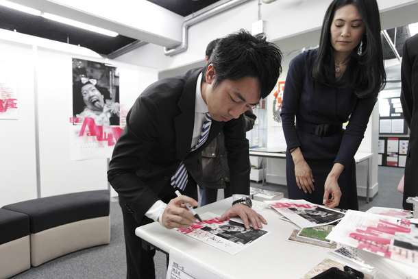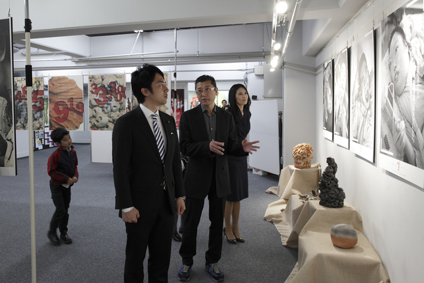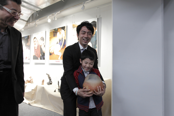 3月21日15時すぎ、ギャラリーに小泉進次郎議員が展覧会を観にきていただきました。当初の予定では15分から20分ということでしたが大幅に延長していただき、45分もじっくりと会話をしながらご覧いただきました。さらに、その場にいた大勢の来場者と共に記念写真も撮ることが出来ました。気さくな方で、一人ひとりと握手を最後までしていただきました。帰り際には「本当に来て良かった!」との、感想をいただきました。