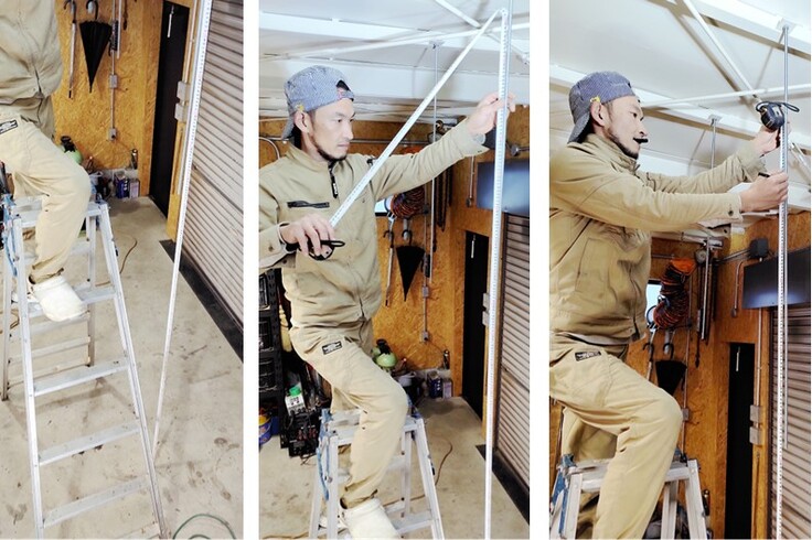 配管工事業を営む長年の友人(画像のK氏)より、「吊りボルトを床下から距離を測って