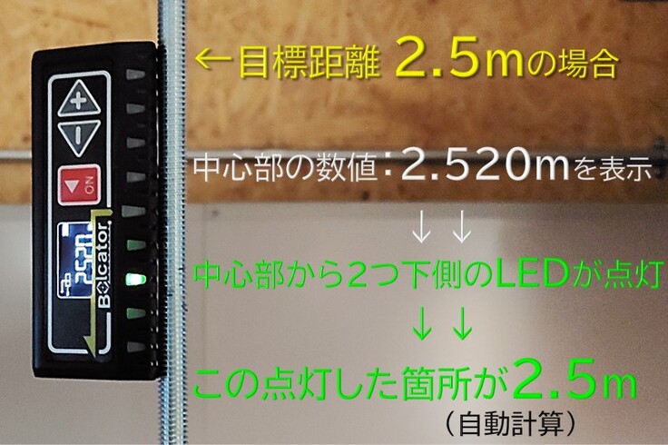超簡単!LEDで目標距離をお知らせするレーザー「位置合わせ器」