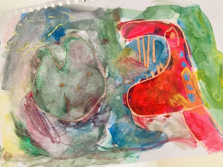 また、この絵は「おまえうまそうだな」を読んだ息子が、ある日その本をテーマに描いたものです。